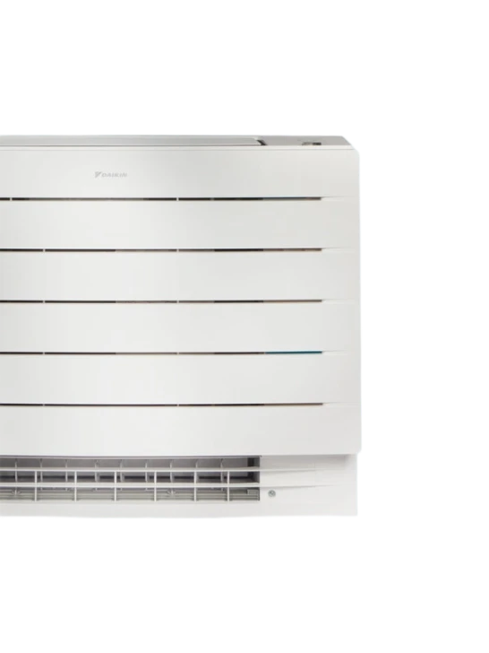 En diskret gulvplaceret luft-til-luft varmepumpe, der kombinerer gulvvarme-effekt og jævn varmefordeling, og har smart radiatorfunktion og WiFi-styring.